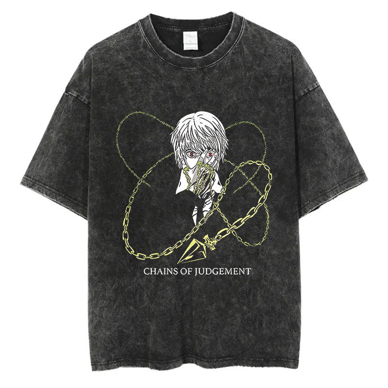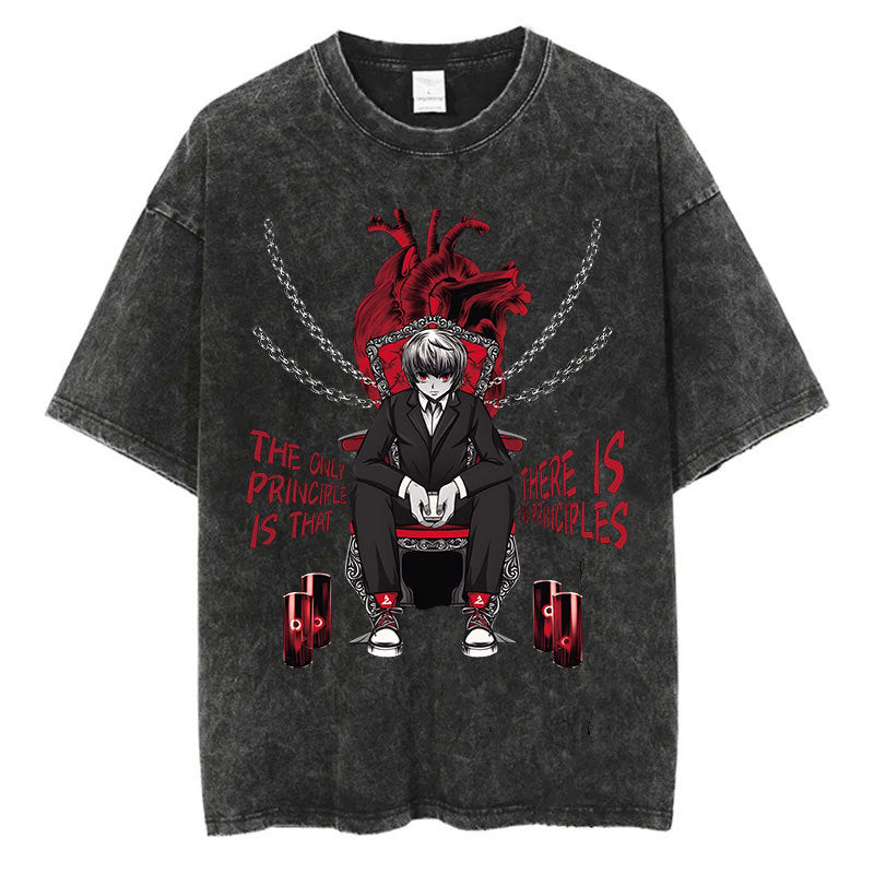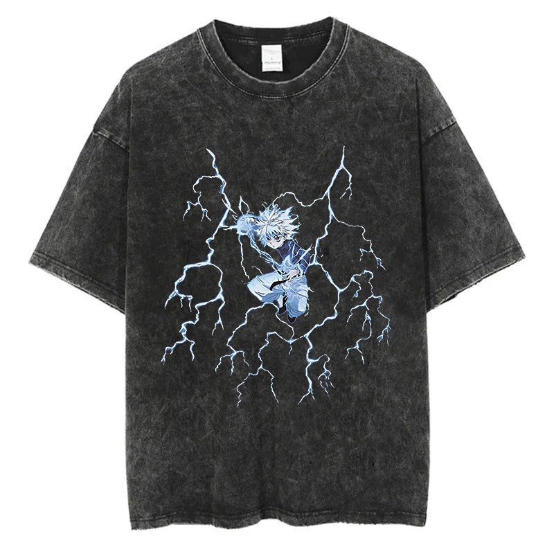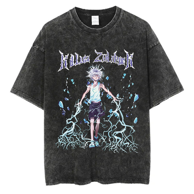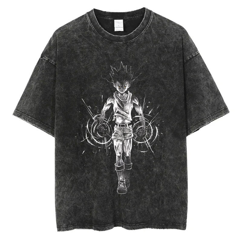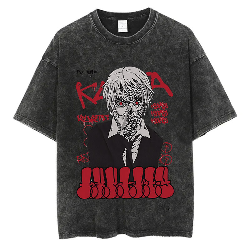 Cotton Men Women Washed Vintage T-Shirt Anime Graphic Print