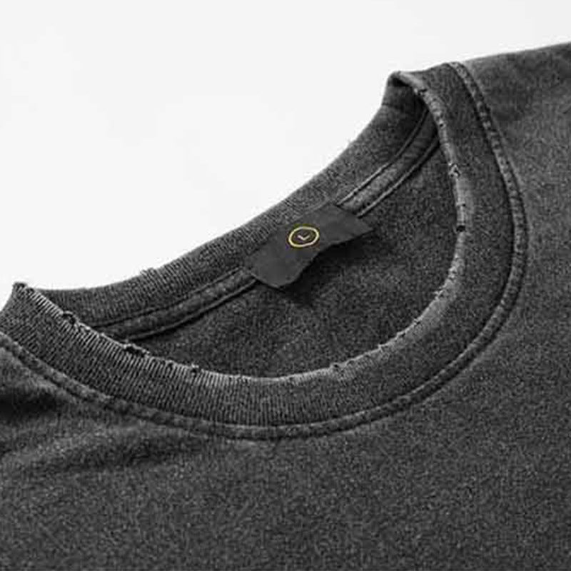Cotton Washed Retro Alphabet Print T-Shirt Hip Hop Short Sleeves