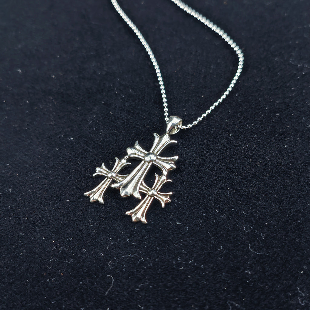 Chrome Hearts Necklace Cross Pendant Men's Vintage Thai Silver Letter Bead Necklace