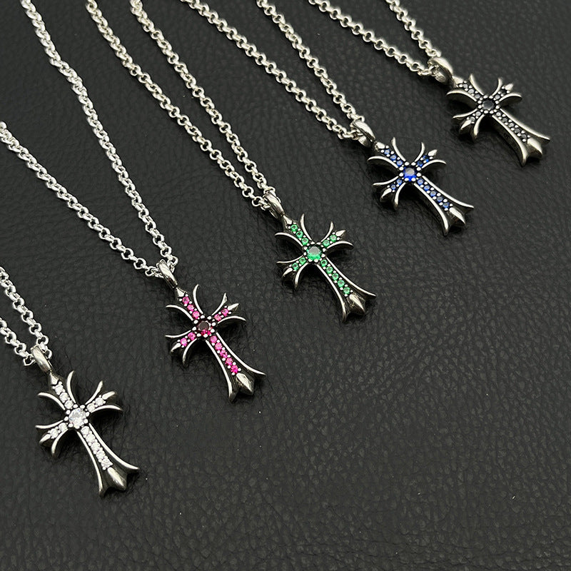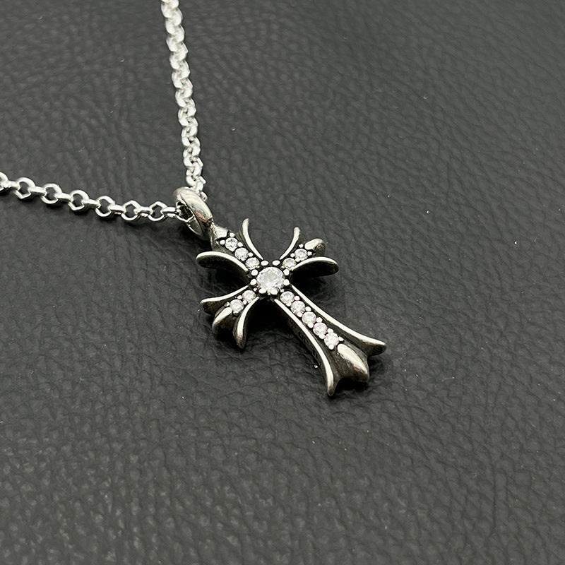 Chrome Hearts Necklace Vintage Cross Necklace with Diamonds for Men and Women