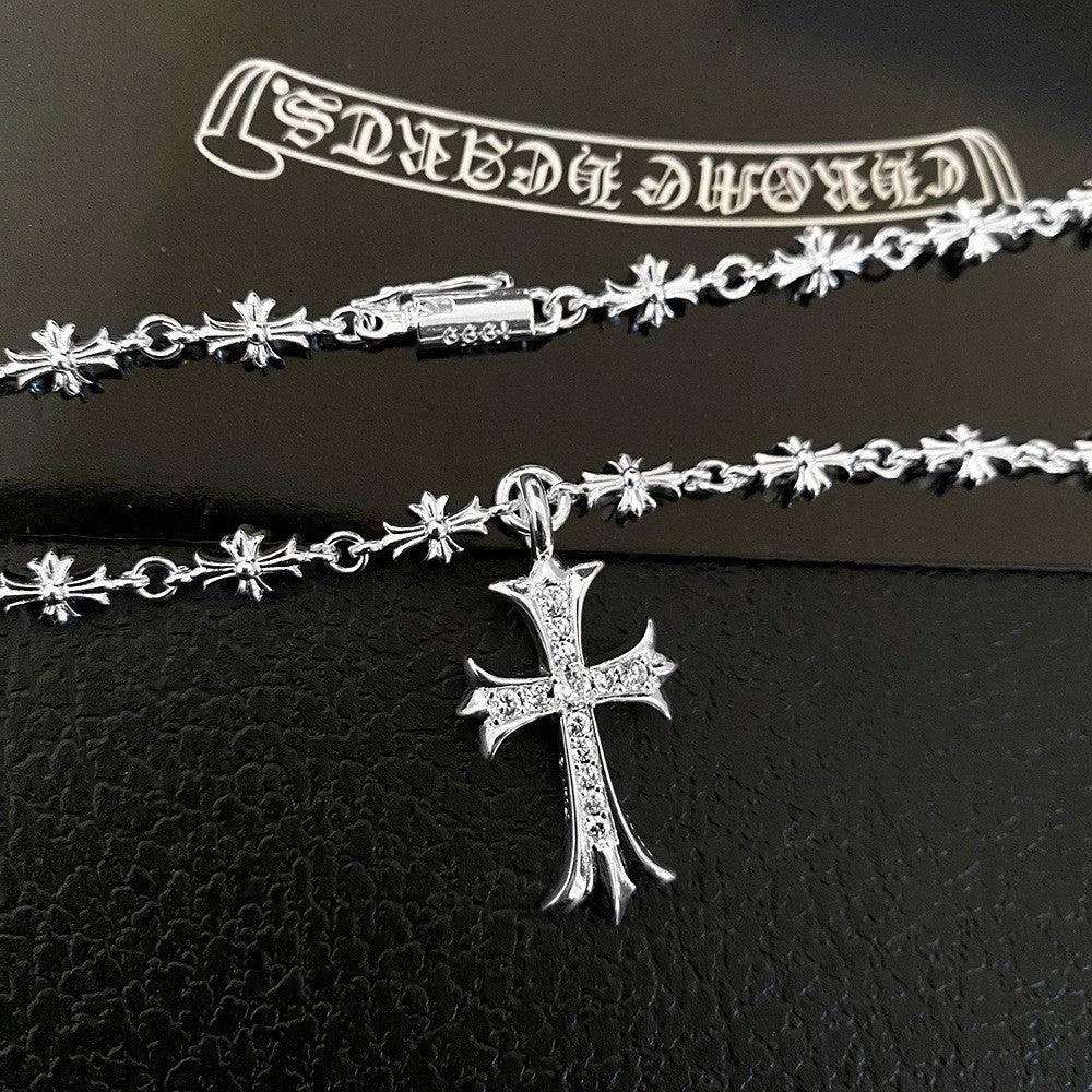 Chrome Hearts Necklace Gold Retractable Cross Cold Wind Diamonds