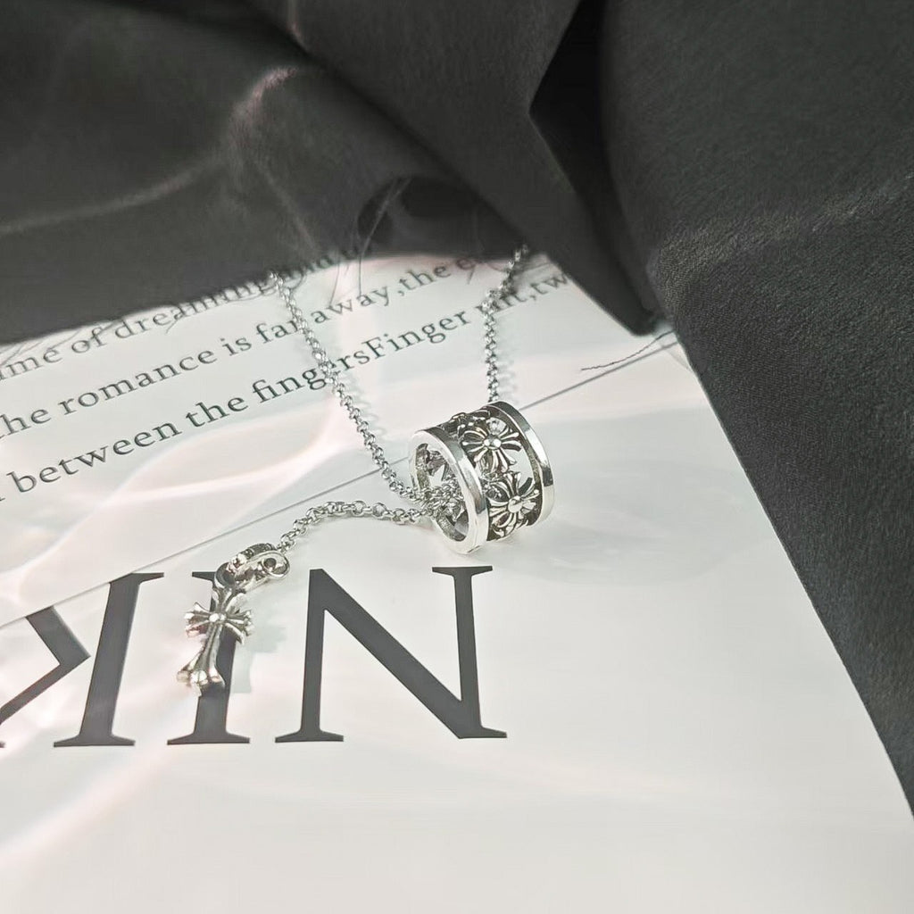 Chrome Hearts Necklace Vintage Hollow Circle Cross Pendant Versatile Men and Women