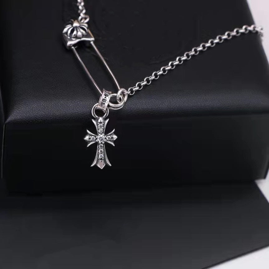 Chrome Hearts Necklace Men's and Women's Vintage Diamond-encrusted Mini Cross Pendant Pin Collarbone Chain