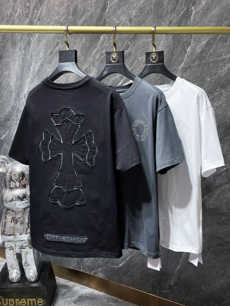 CHH Chrome Hearts T Shirts Machine Embroidery Hollow Cross Short Sleeve