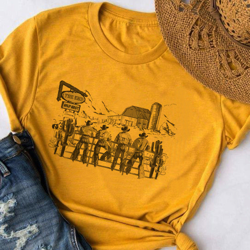 Cowboy Rodeo Hand Drawn Graphic T-Shirts Loose Short Sleeve