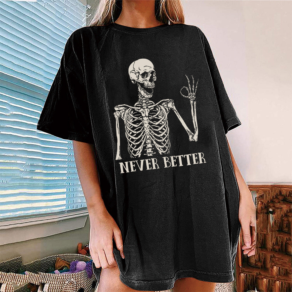Halloween Drop Shoulder T-shirt Casual Vintage Never Better