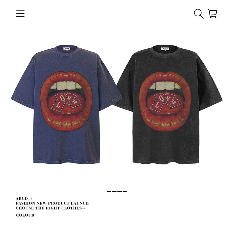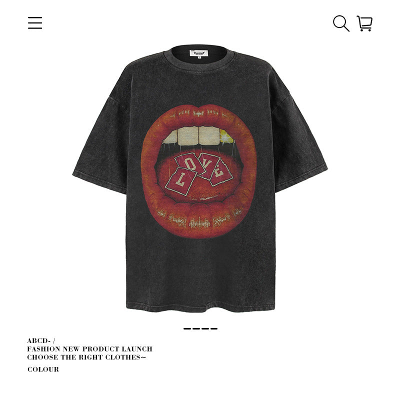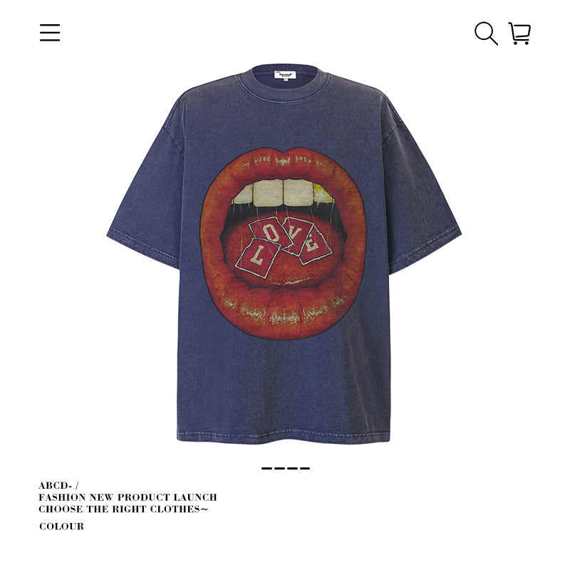 American vintage street T-shirt pure cotton retro men's and women's summer loose