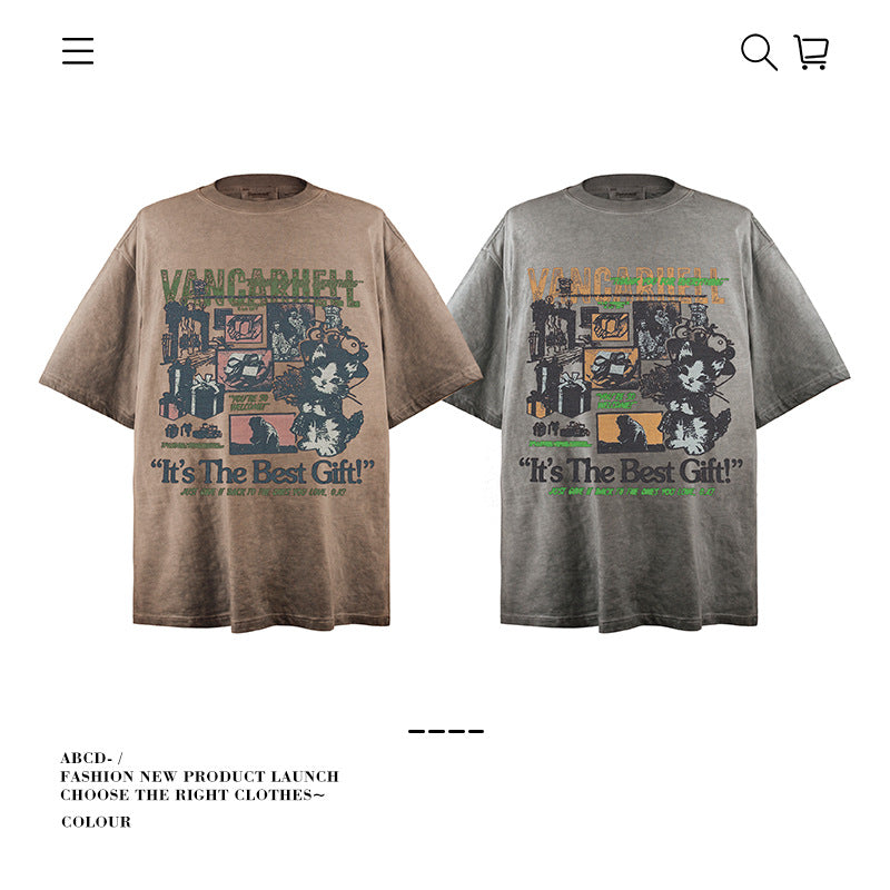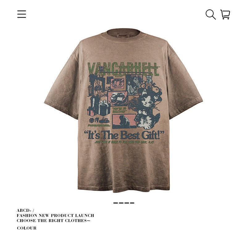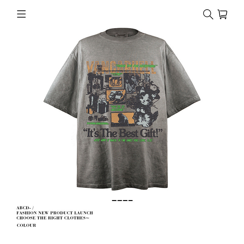 American vintage street T-shirt pure cotton retro men's and women's summer loose
