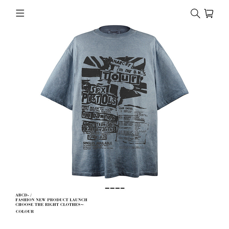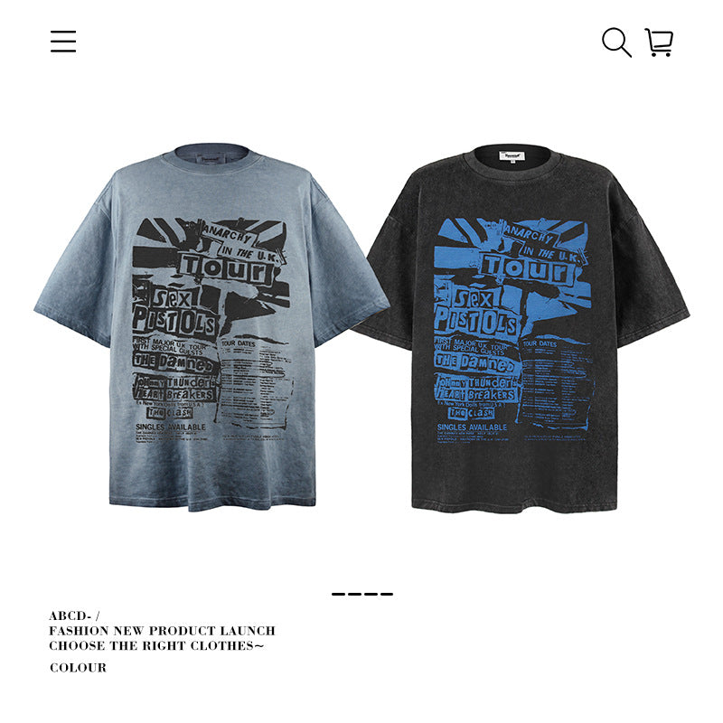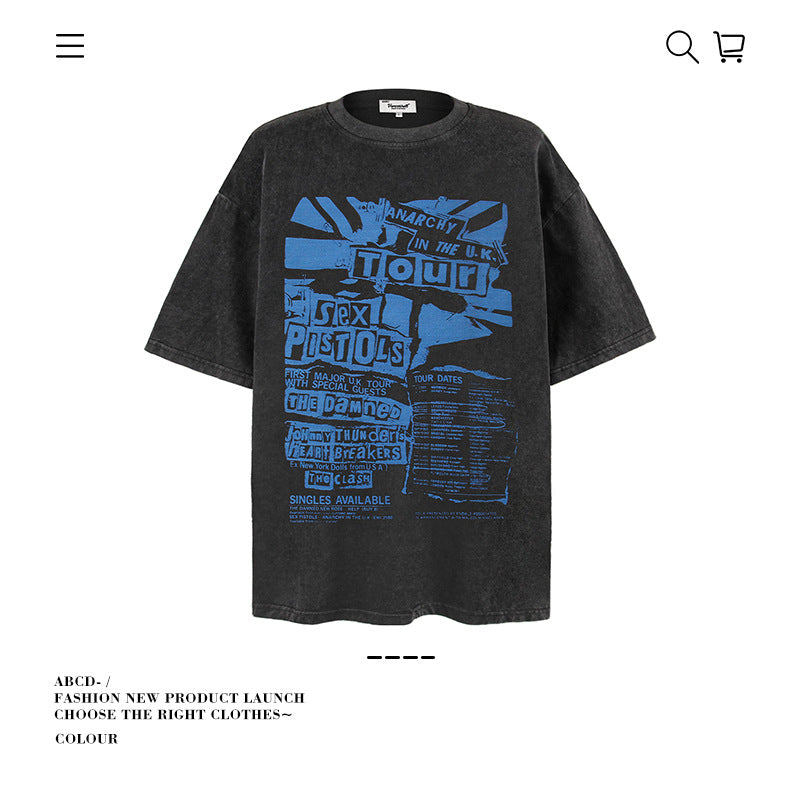 American vintage street T-shirt pure cotton retro men's and women's summer loose